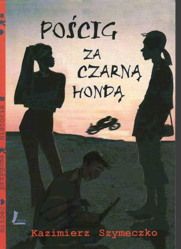 W "Pościgu za czarną hondą" zrównoważony haker Gogel plus pokręcona ekolożka Sójka, plus zakochany w Sójce, grach fabularnych i historii Master równa się... Niezła draka! Jaka? Oczywiście kryminalna! Wymieniona wyżej trójca uczy się grzecznie w ostatniej klasie gimnazjum, ale po lekcjach prowadzi prywatne śledztwo. Jedyny trop wiodący do nieuchwytnego bandyty, to ślad opon umykającej czarnej hondy i przerażony zając, który zresztą przepadł bez wieści.