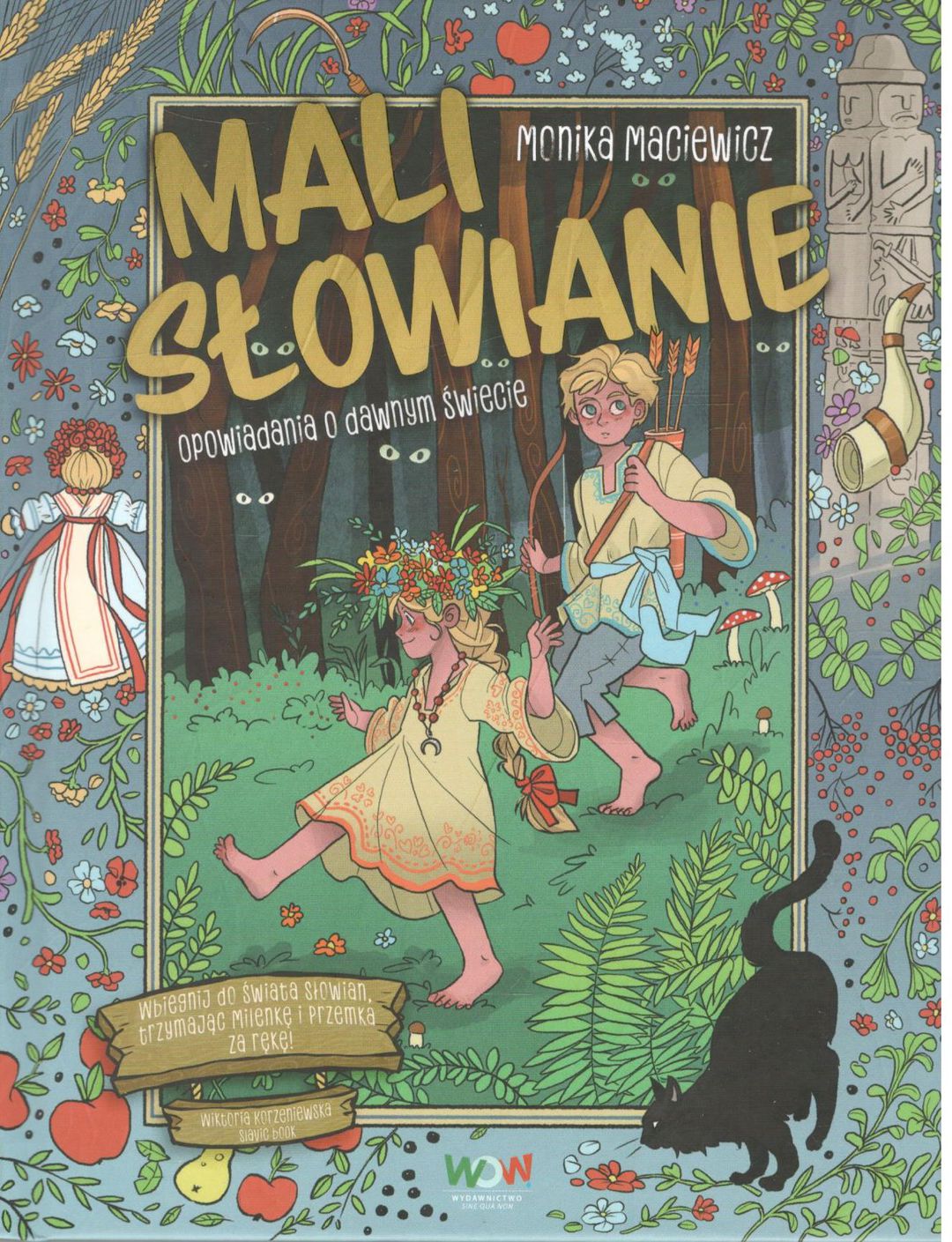 Niemój i Nielubka mieszkają w drewnianym domu w słowiańskiej osadzie. Żyją w zgodzie z naturą, pomagają rodzicom, psocą i biorą udział w uroczyście obchodzonych obrzędach. Nawet gdy bywa groźnie, przygody stają się wymagające i trudne – nie tracą odwagi i hartu ducha. W końcu strzegą ich słowiańscy bogowie i mądrzy mieszkańcy osady, a i oni sami mają dość sprytu i odwagi, by przechytrzyć niejednego złego ducha! Właśnie zbliża się wielki dzień, którego rodzeństwo oczekuje ze zniecierpliwieniem. Przed nimi zapleciny i postrzyżyny – to wtedy dostaną nowe imiona! Dziewięć niezwykłych historii o małych Słowianach, dzięki którym dowiecie się, gdzie można spotkać jagodową babę, jak zrobić motankę, do czego służy zapaska oraz kim byli potężny Świętowit, mały chmurnik czy tajemnicza rodzanica. Poznacie życie, zwyczaje, święta, bogów i demony sprzed tysiąca lat!